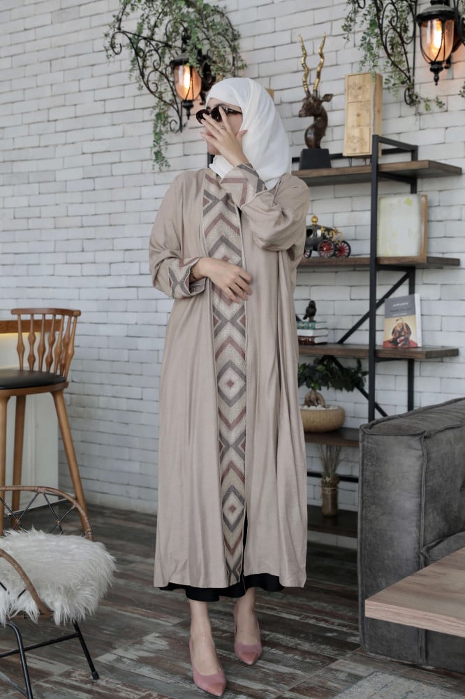 عباية بيج مطرزة