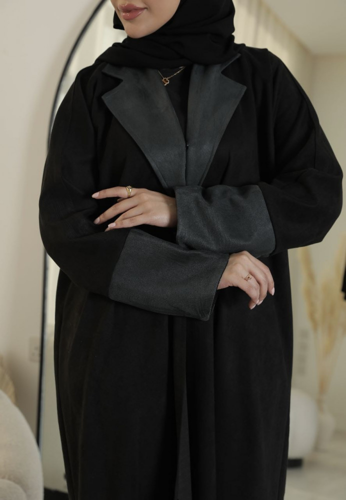 عباية شتوية بخامة الشمواه الاسود وتداخل شمواه باللون الاخضر الباهت