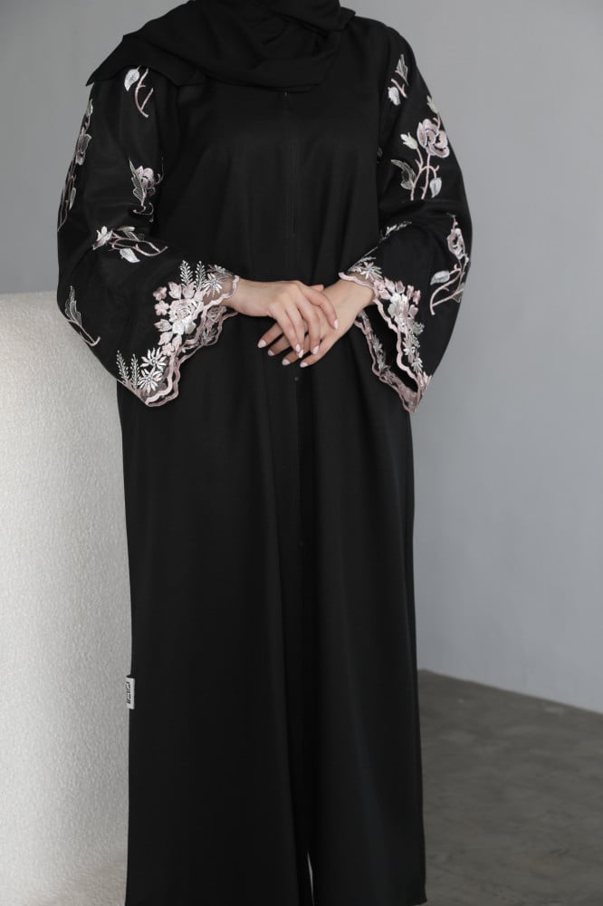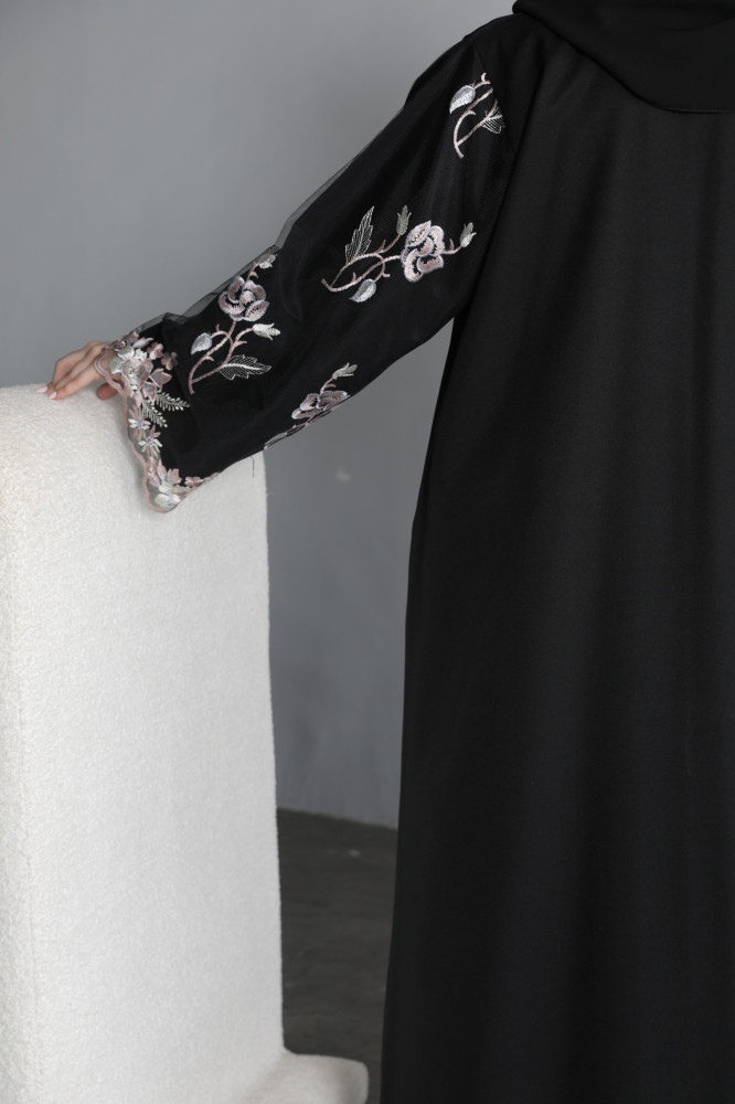 قصة مستقيمه واكمام اماراتيه دانتيل مطرز بالورد