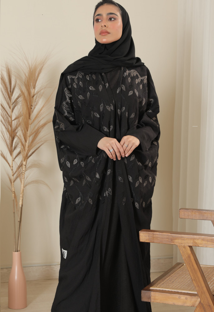 عباية صيفية بخامة قماش الكريب السعودي باللون الاسود