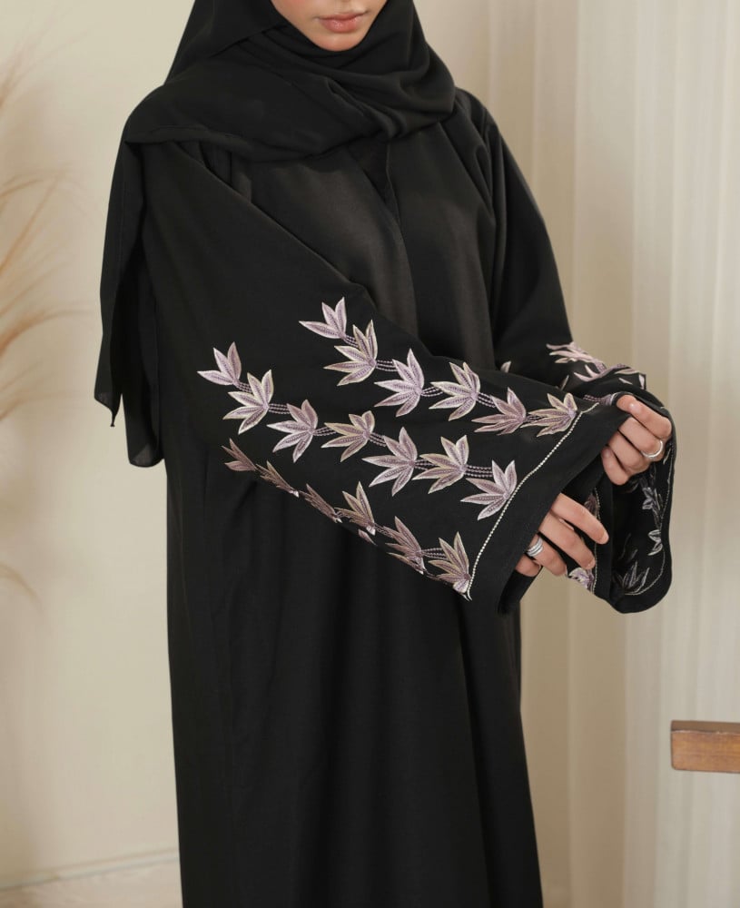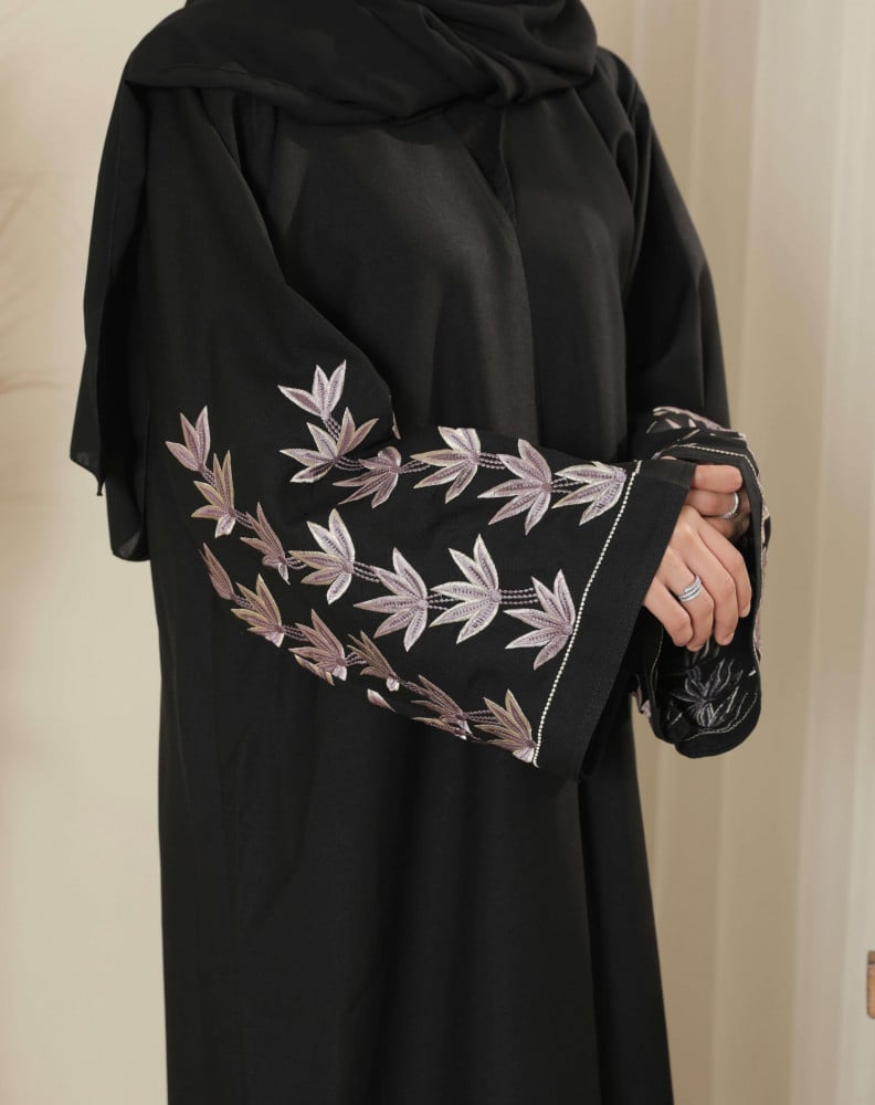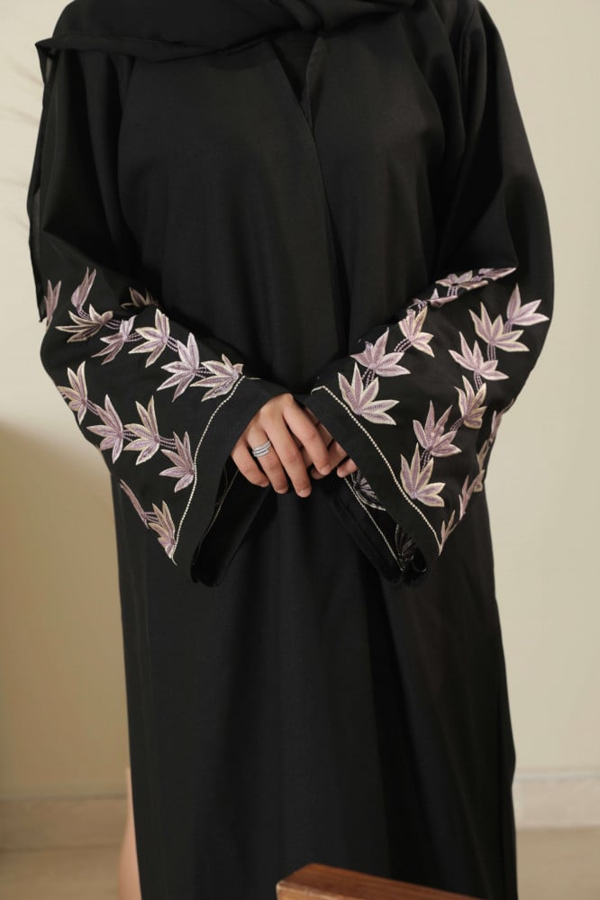 عباية صيفية بخامة القماش الملكي وبأكمام مطرزة بالازهار