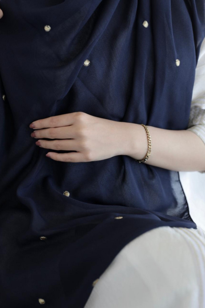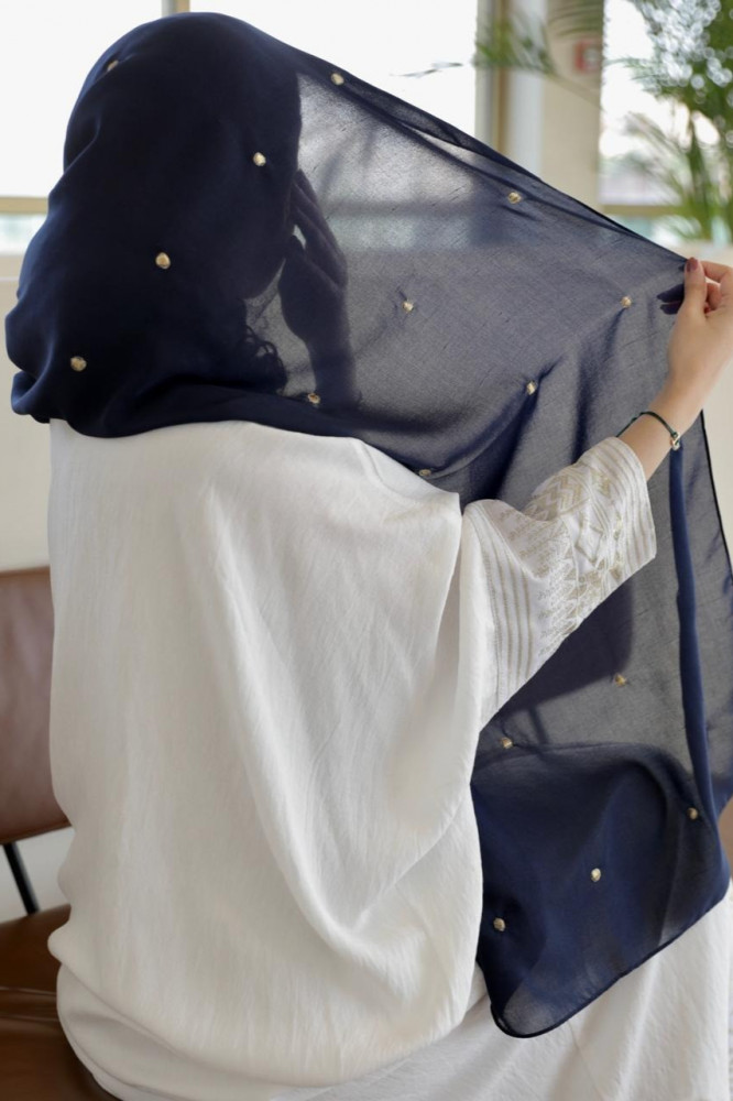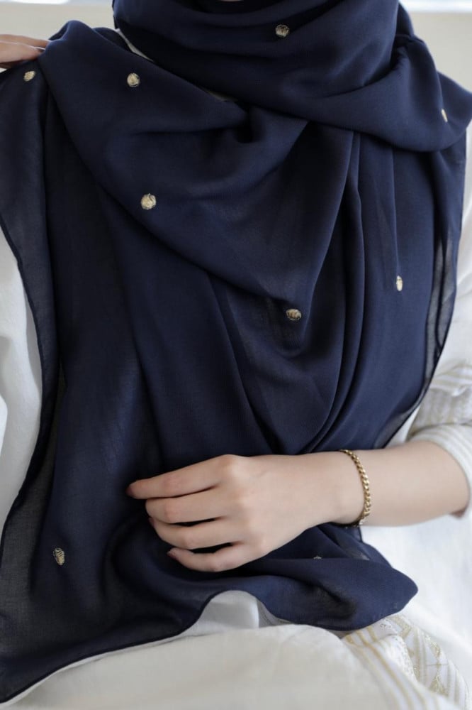 اجدد اشكال الطرح من أجل المرأة العصرية التي تهتم بان تكون في أفضل وأبهى حلة ممكنة في كل الأوقات، فجمال مظهرك يبدأ من الرأس بما عليه من حجاب يزين المرأة و يصونها، لذلك نقدم إليك سيدتي طرحة رائعة باللون الكحلي المميز الذي ينسق مع كل الملابس تقريبا بكل سهولة.